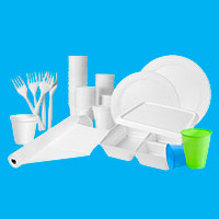 Copos descartáveis, talheres, marmitex, bandejas, hamburgueira e bandeja de isopor para kikão.